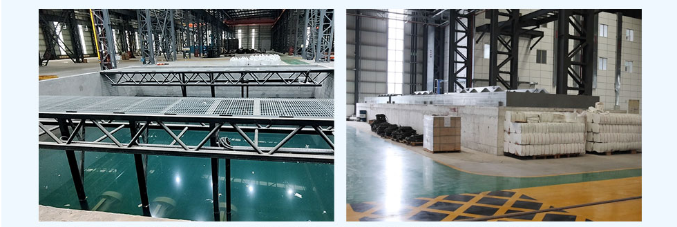 基地配備2座中頻爐、1座保溫爐、4臺燃?xì)鉄崽幚頎t、1臺固定混砂機(jī)、4臺移動混砂機(jī)、7個大型澆注坑、3臺拋丸機(jī)、
